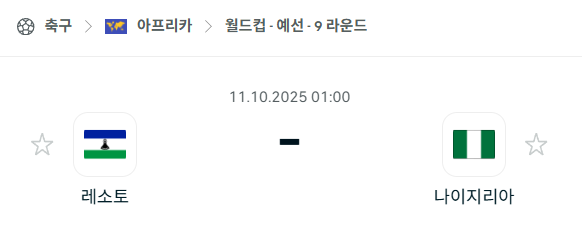 [아프리카 월드컵예선] 2025년10월11일 레소토 vs 나이지리아 분석 중계