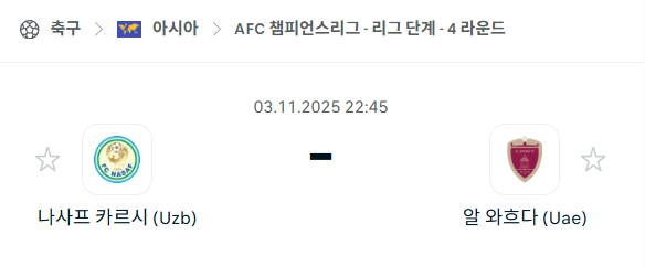 [AFC 아시아챔피언스리그] 2025년11월3일 나사프 카르시 vs 알 와흐다 분석 중계