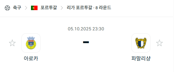 [포르투갈 프리메이라리가] 2025년10월5일 아루카 vs 파말리캉 분석 중계