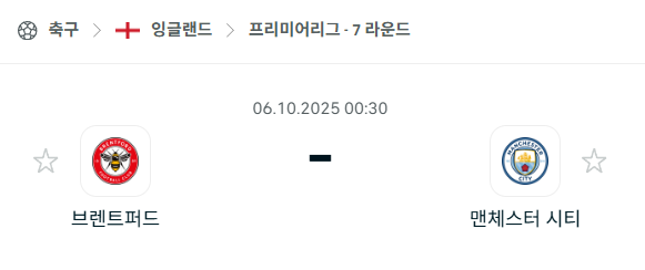[EPL 프리미어리그] 2025년10월6일 브렌트포드 vs 맨체스터 시티(맨시티) 분석 중계
