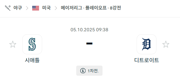 [MLB 메이저리그] 2025년10월5일 시애틀 매리너스 vs 디트로이트 타이거즈 분석 중계