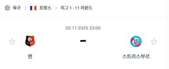 2025년 11월 02일에 열리는 프랑스 리그1 스타드 렌과 스트라스부르 알자스 경기 분석입니다. 이번 경기는