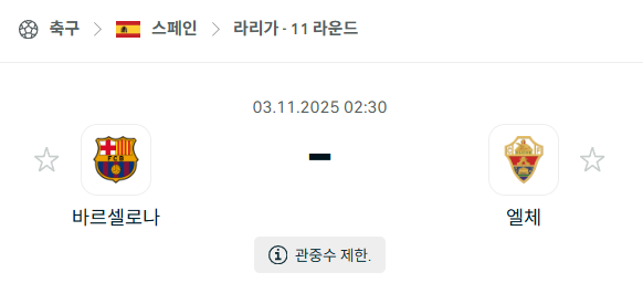 [스페인 라리가] 2025년11월3일 바르셀로나 vs 엘체 분석 중계