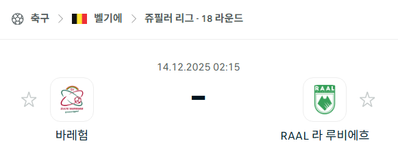 [벨기에 쥬필러리그] 2025년12월14일 바레험 vs 라루비에르 분석 중계