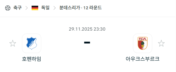 [독일 분데스리가] 2025년11월29일 호펜하임 vs 아우크스부르크 분석 중계