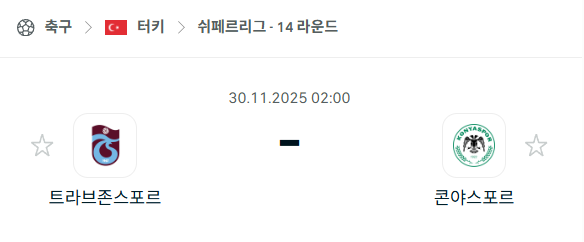 [터키 쉬페르리그] 2025년11월30일 트라브존스포르 vs 코냐스포르 분석 중계