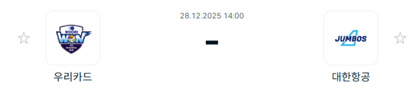 2025년 12월 28일에 열리는 프로배구의 우리카드 우리WON 배구단와 대한항공 점보스 배구단 경기 분석입니다. 이번 경기는 연패 흐름 속에서 반등이 필요한 우리카드 우리WON 배구단와 핵심 전력 이탈로 전력 운용에 어려움을 겪고 있는 대한항공 점보스 배구단의 맞대결로, 전력 공백과 경기 집중력이 승부의 핵심 변수가 될 가능성이 높은 경기입니다.