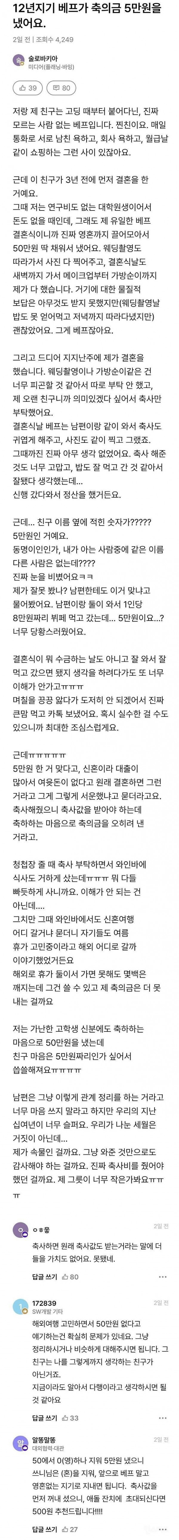[유머] 12년지기 베프가 내 결혼식에서 낸 축의금ㄷㄷ
