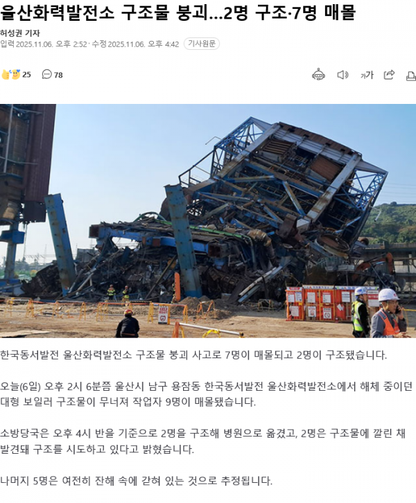 [기타] 울산화력발전소 구조물 붕괴…2명 구조·7명 매몰