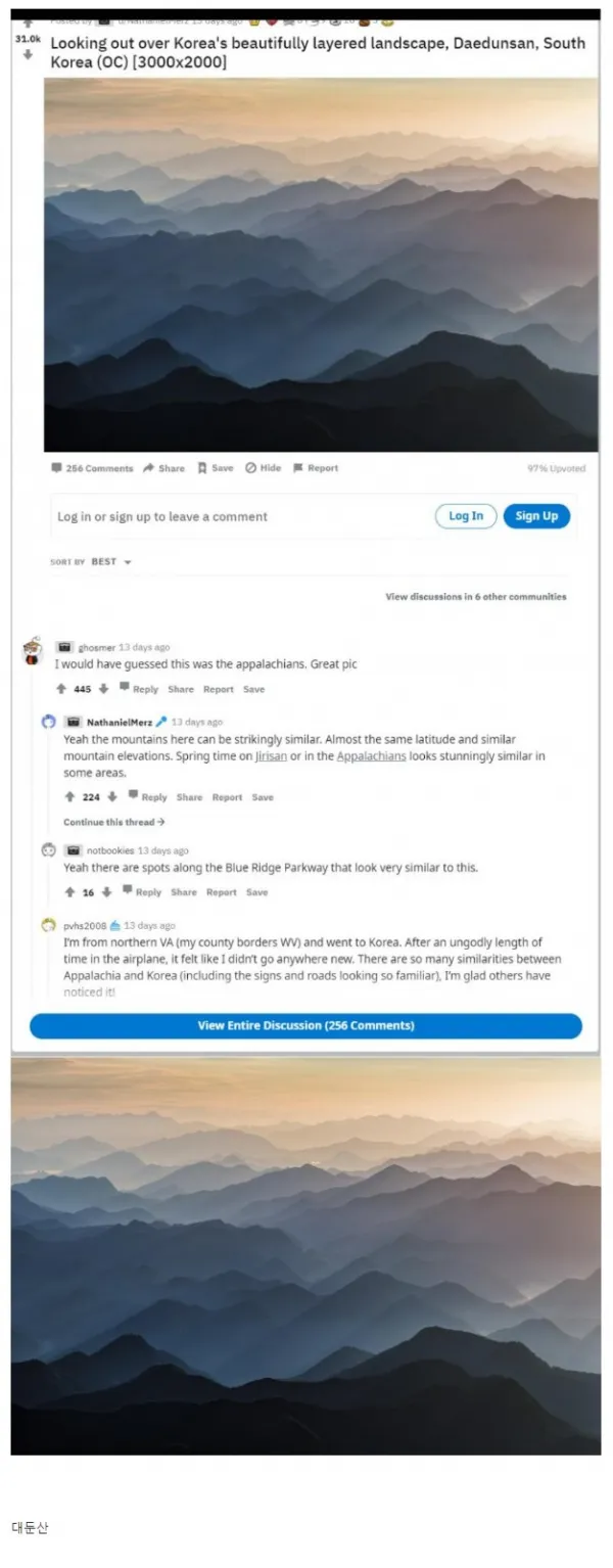 [감동] 레딧에서 화제가 된 한국의 산맥