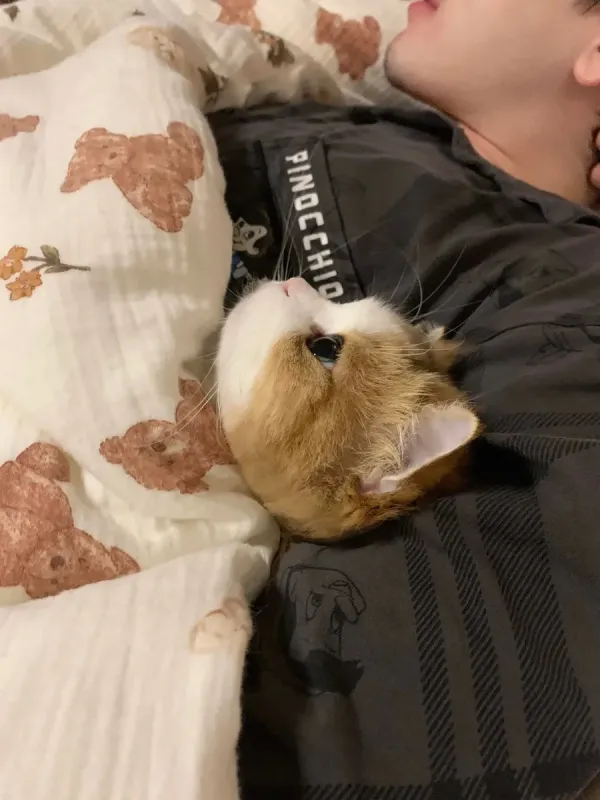 [동물] 집사 품에서 자다 깬 냐옹이...