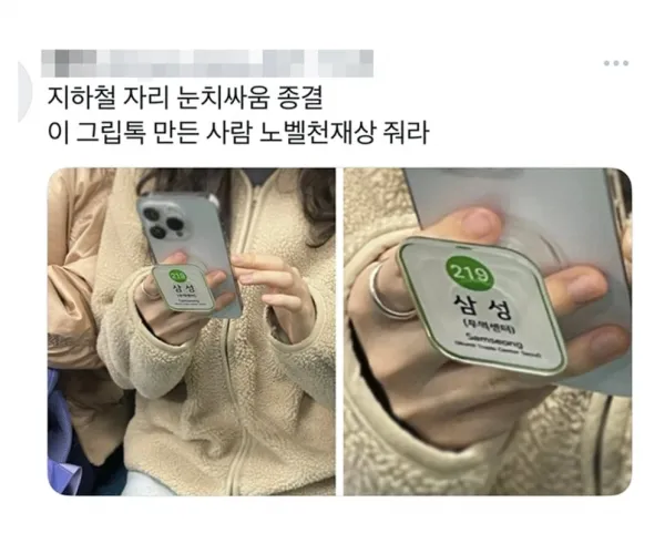 [유머] 지하철 자리 눈치 싸움 종결 그립톡