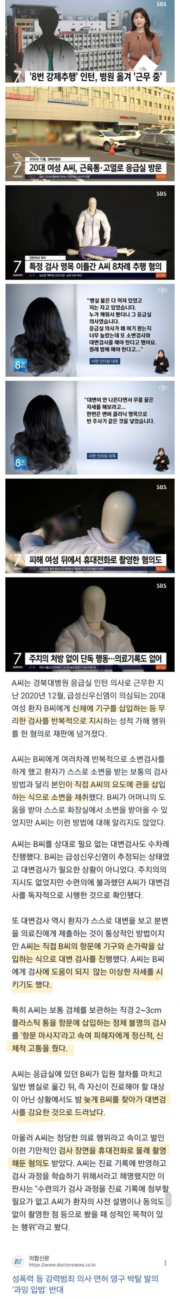 [기타] 의료행위인척 속이고 성추행 8번한 의턴새끼