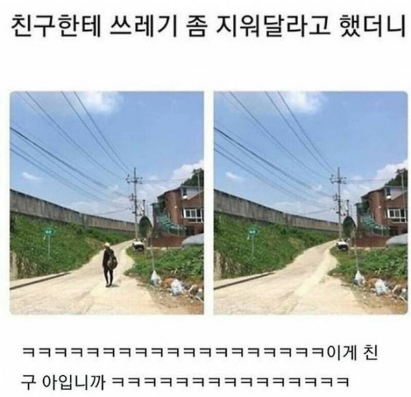 [유머] 친구한테 사진에 있는 쓰레기 좀 지워달라고 했더니...