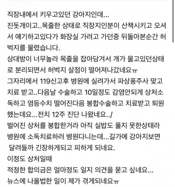 [엽기] 혐주의) 개물림사고시 어느정도의 위로금 받아야할까요