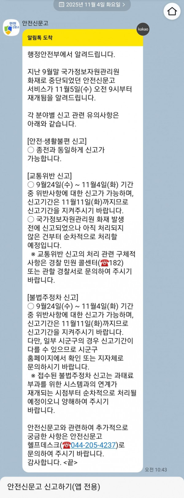 [정보] 11월 5일 오전 9시부터 안전 신문고 이용가능하네요