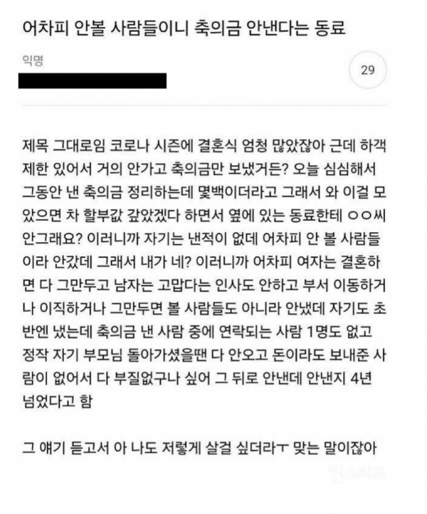 [기타] 직장 동료가 축의금을 안 내기 시작한 이유