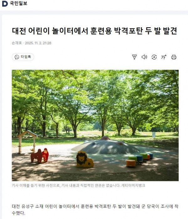 [사회] 대전 어린이 놀이터에서 훈련용 박격포탄 발견