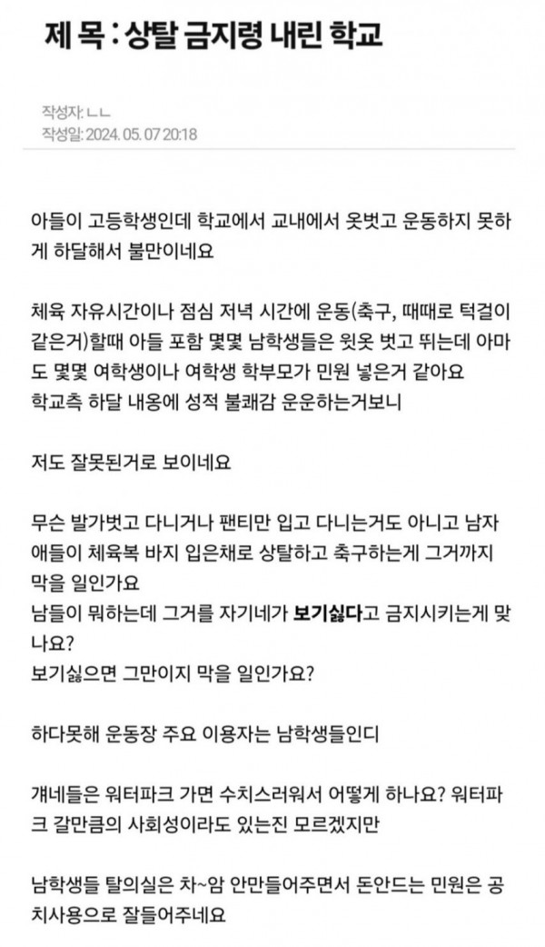 [유머] 고등학교, "옷 벗고 운동하지 마라"
