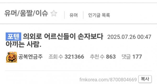 [유머] 의외로 어르신들이 손자보다 사랑하는 사람.jpg
