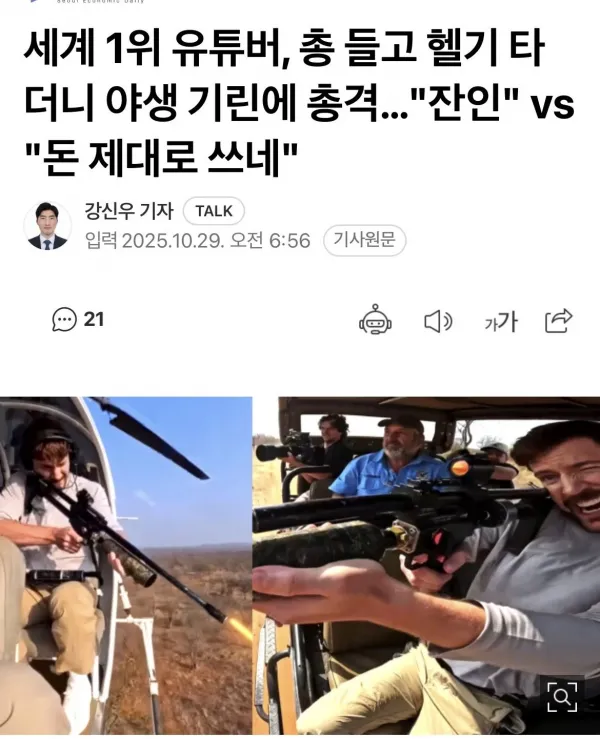 [유머] 세계 1위 유튜버 수백마리 야생기린한테 총