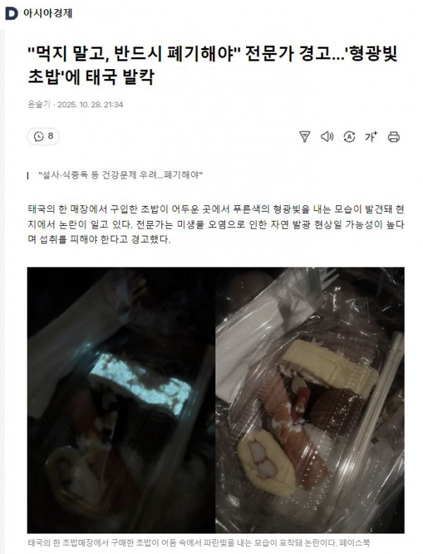 [엽기] 태국을 발칵 뒤집은 형광빛 초밥