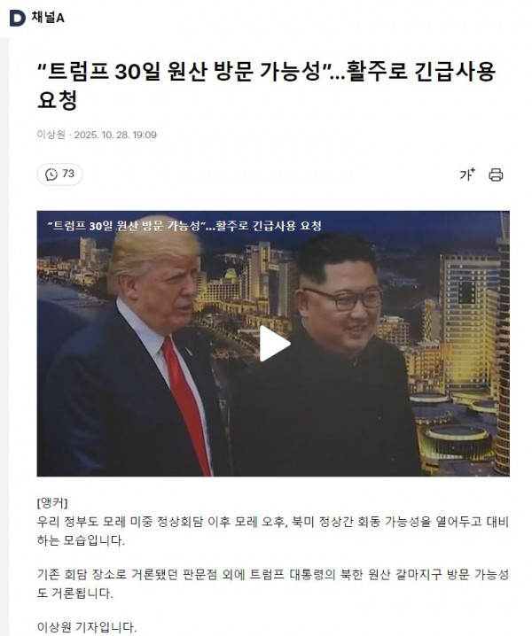 [사회] 트럼프 미 대통령, 30일 북한 원산 방문 가능성..?