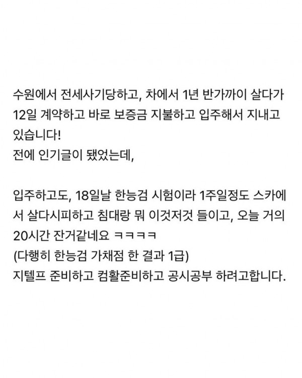[감동] 전세사기 당하고 차에서 1년반 살고 새 집 입주한 사람