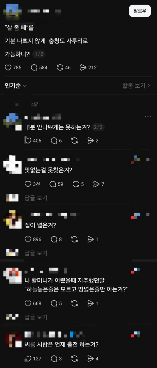 [유머] 살 좀 빼를 기분나쁘지 않게 충청도 사투리로 하면