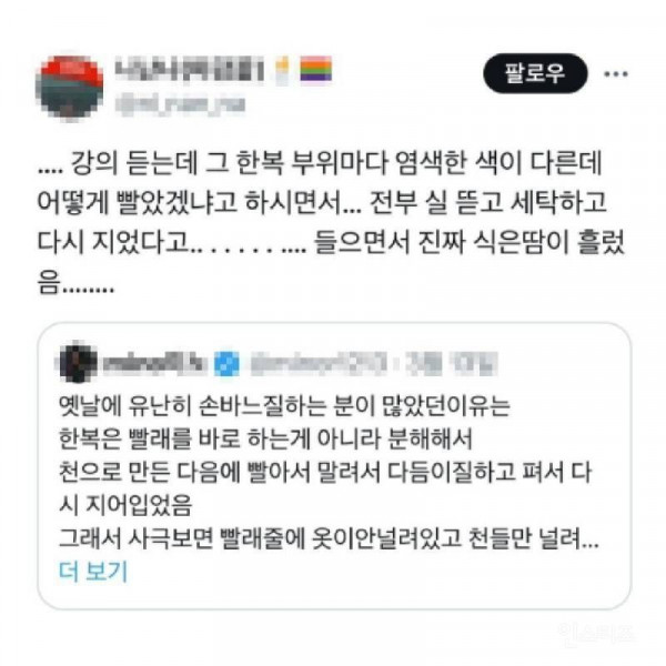 [정보] 상상만 해도 토 쏠리는 옛날 한복 빨래법 ㄷㄷ