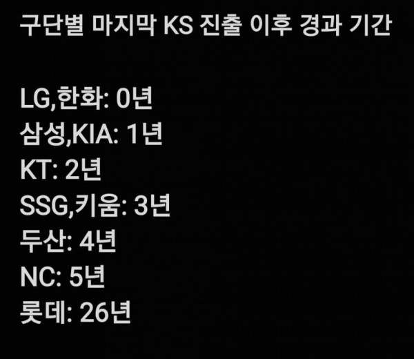 [정보] 구단별 마지막 KS 진출 이후 경과 기간