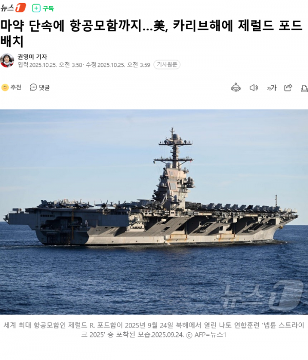 [기타] 트럼프, 마약 단속을 이유로 항모 제럴드 포드 카리브해 배치