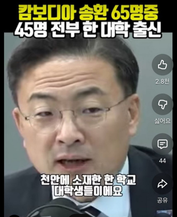 [기타] 캄보디아 송환 64명 중 45명이 동일한 대학 출신