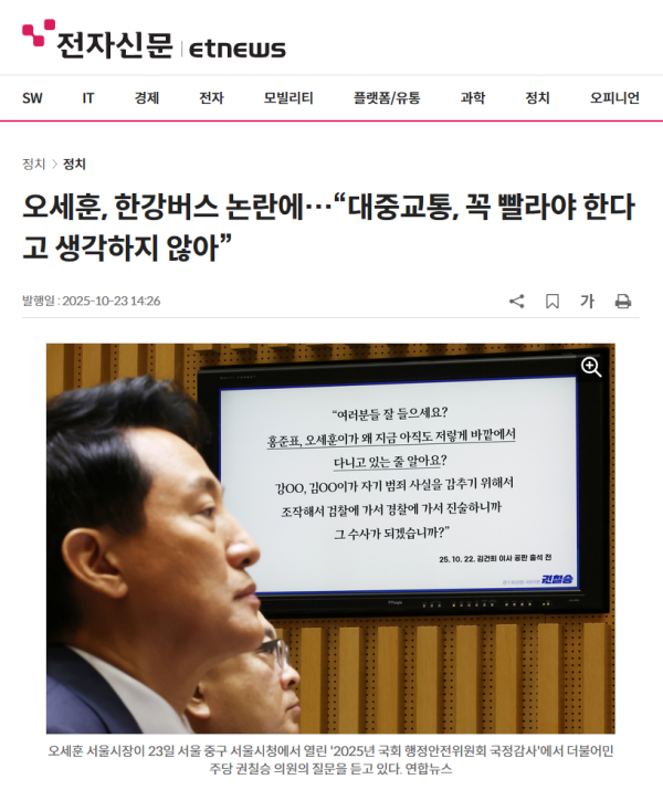 [사회] 오세훈 “대중교통, 꼭 빨라야 한다고 생각하지 않아”