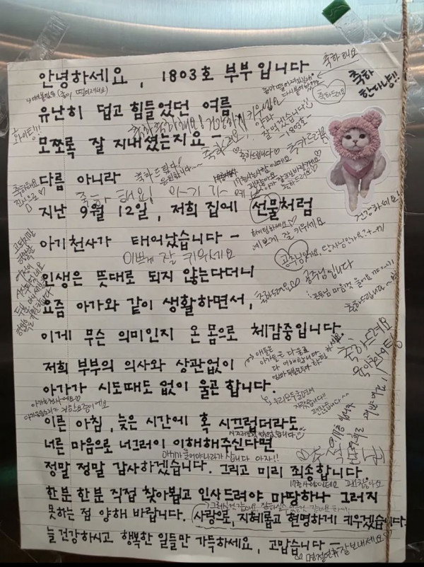 [감동] 어느 아파트 엘리베이터에 붙은 게시글.