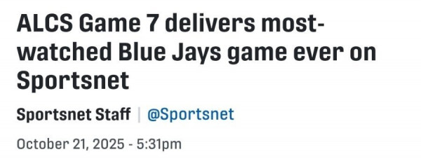 [기타] 캐나다 인구 4150만명 중에 1180만명이 시청했다는 MLB 경기.gif