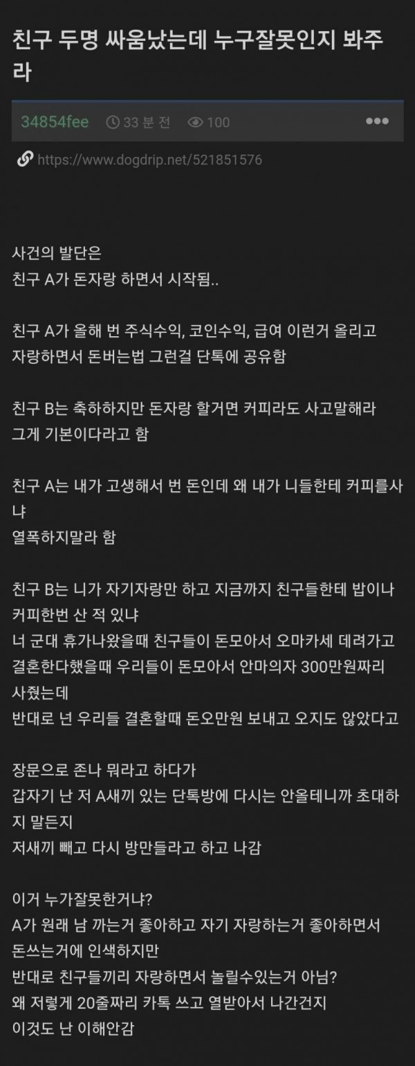 [유머] 친구둘이 싸움났는데 누가문제임?