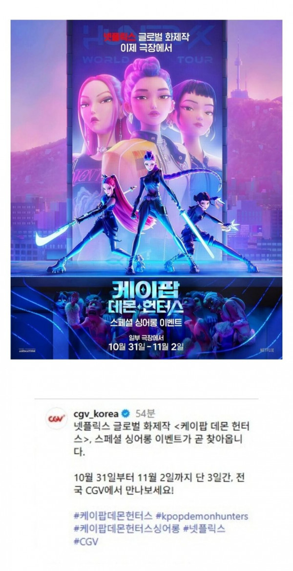 [정보] 케데헌 싱어롱 이벤트 극장개봉 CGV에서 개봉