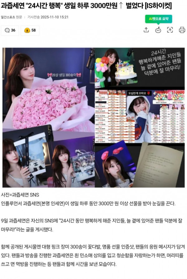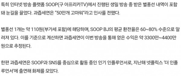 [기타] BJ 하루 별풍 수입 인증하는 기사 ㅎ