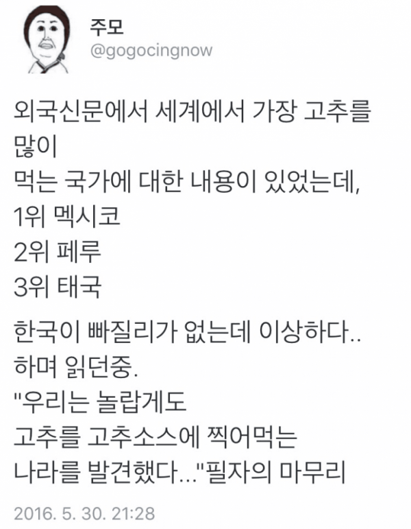 [유머] 세계에서 고추를 가장 많이 먹는 나라에 한국이 없음