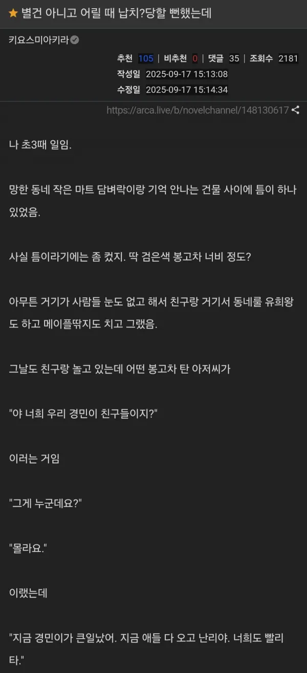 [유머] 아카] 별건 아니고 어릴 때 납치?당할 뻔했는데.webp