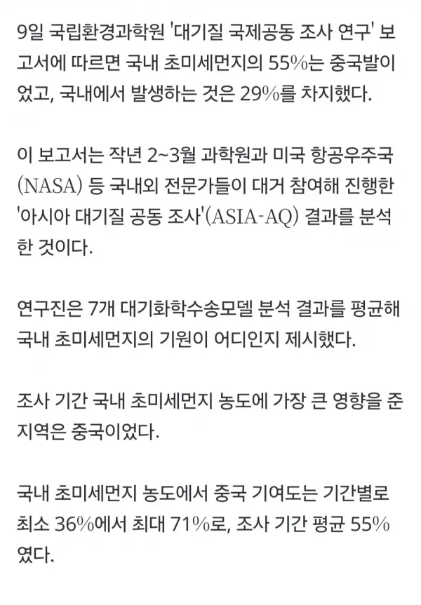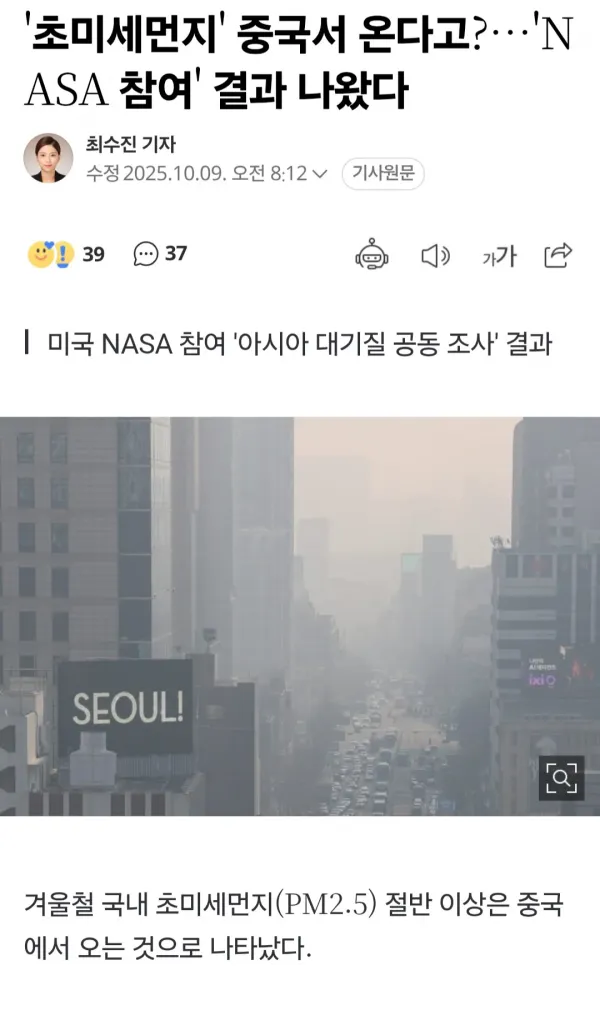 [사회] '초미세먼지' 중국????????서 온다고?…'NASA 참여' 결과 나왔다