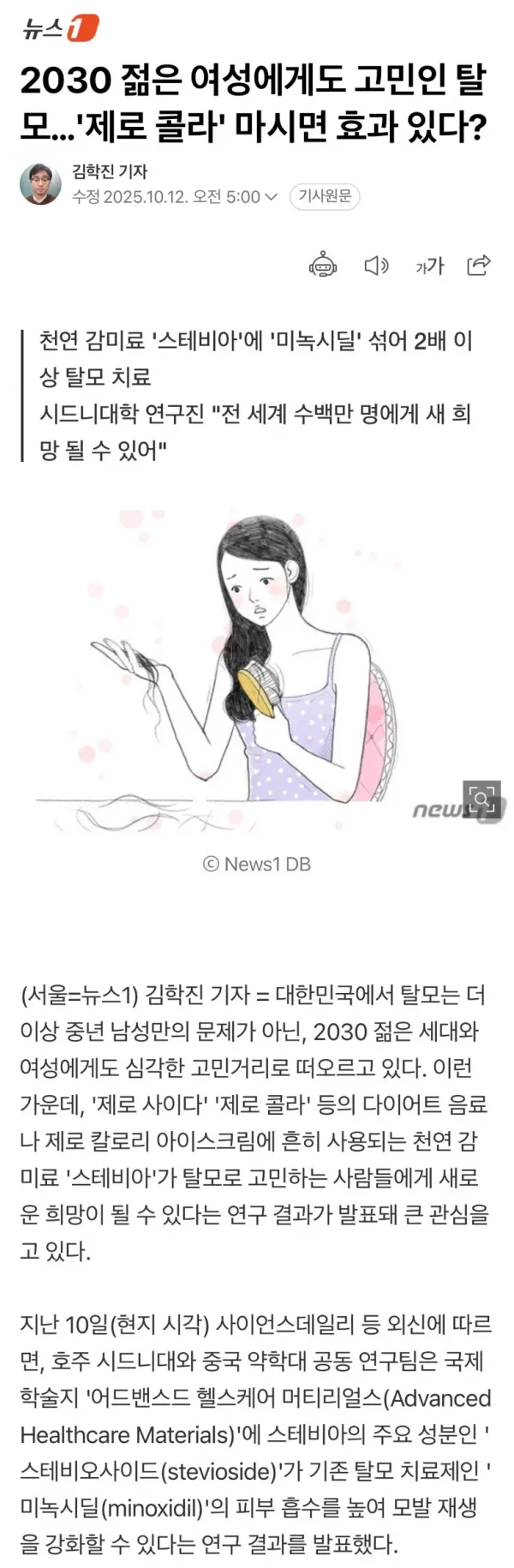 [유머] 탈모…'제로 콜라' 마시면 효과 있다?