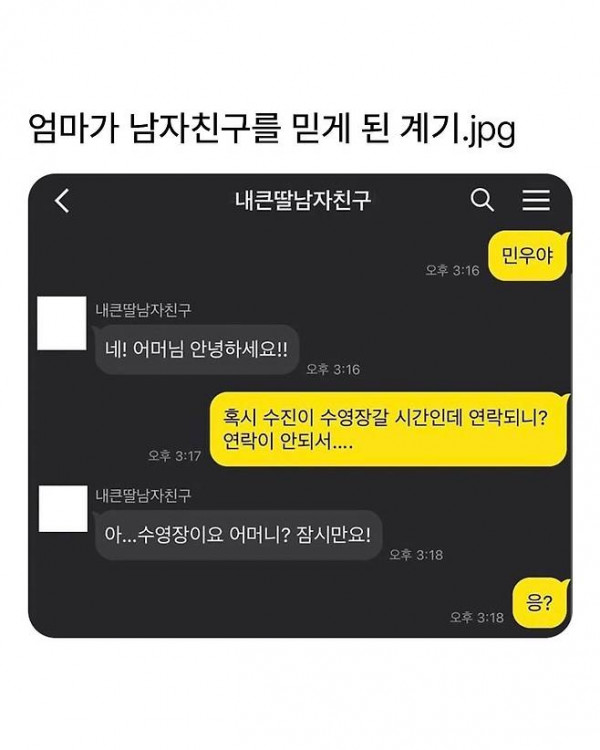 [유머] 엄마가 남친을 믿게 된 계기.