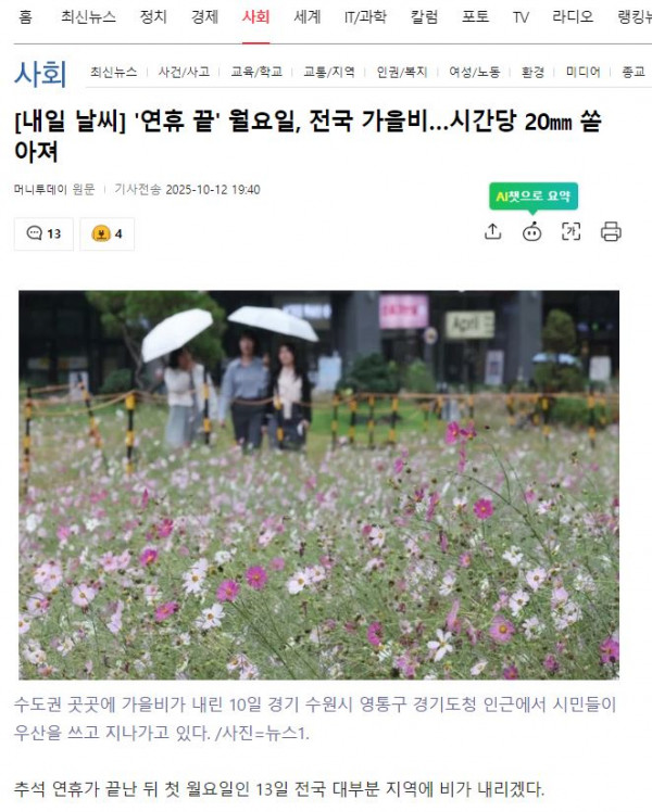 [사회] 전국 가을비가 예정되어있는 내일의 날씨
