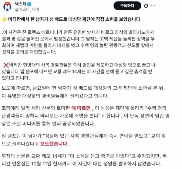 [사회] 바티칸 성 베드로 대성당 제단에 소변 테러
