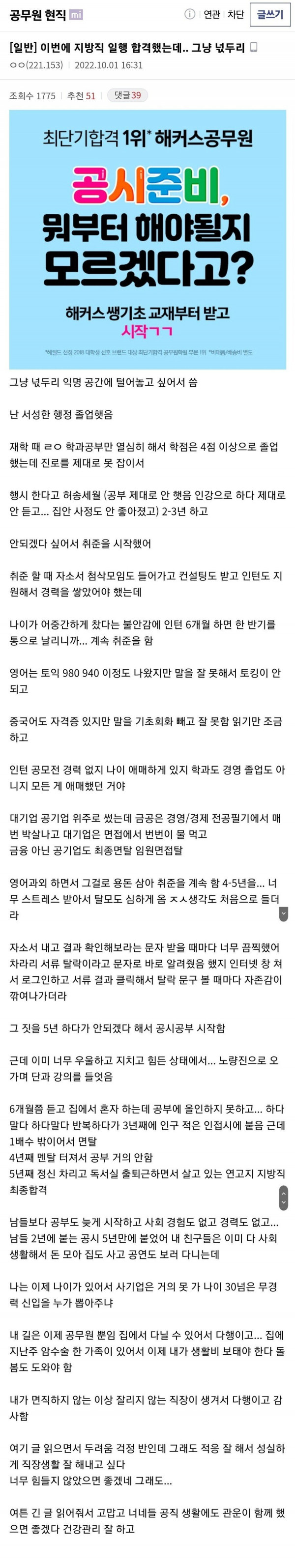 [기타] 서성한 출신 30대 중반 공무원 시험 합격 후기