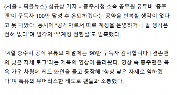 [유머] 충주맨, 100만 구독 앞두고 ‘은퇴 굳은 결심’ㄷㄷㄷㄷ