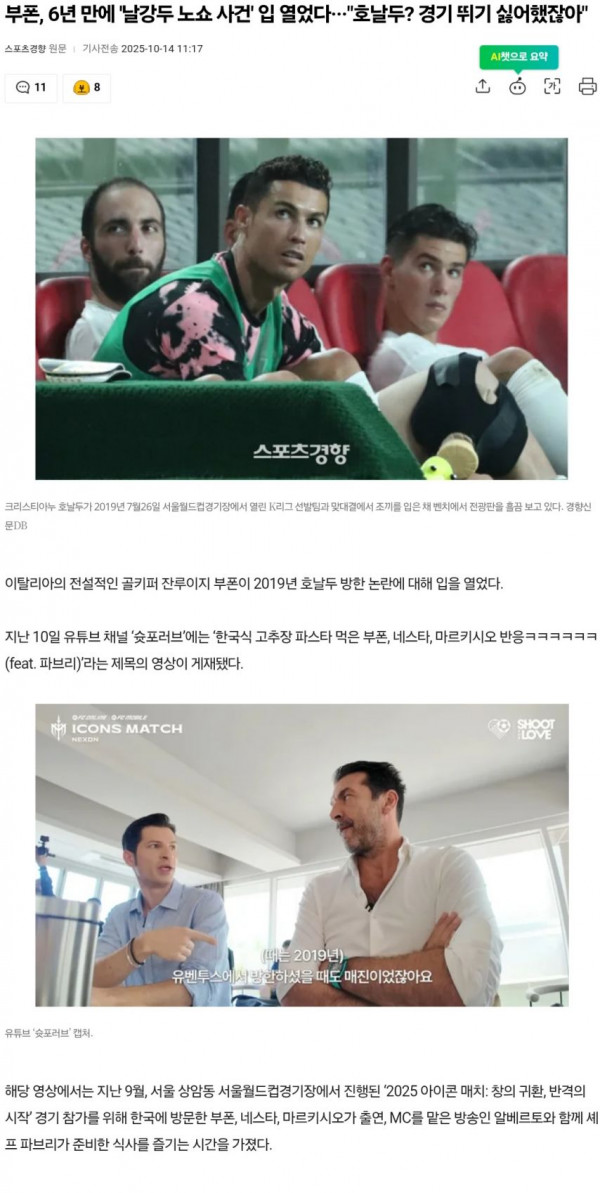 [기타] 부폰, 6년 만에 '날강두 노쇼 사건' 입 열었다···"그때 호날두가 경기에 뛰고 싶어하지 않았었다"