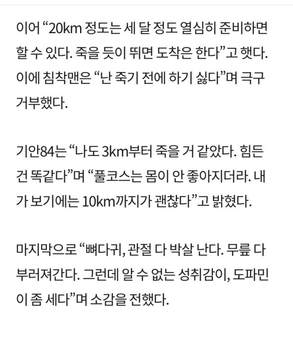 [기타] 런닝.마라톤 부작용 말하는 사람들과 기안84